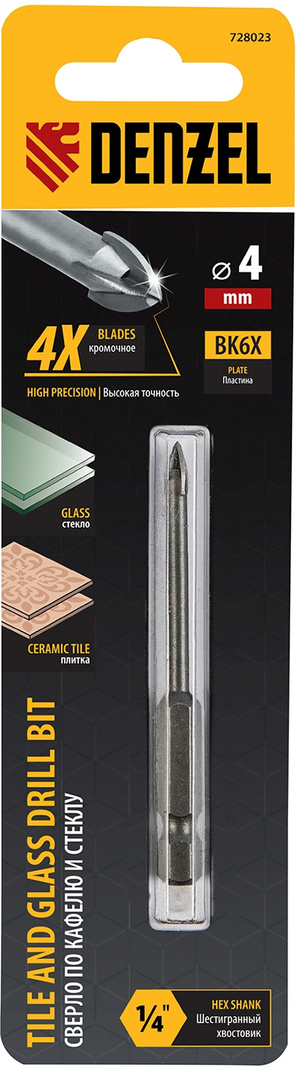 Сверло Denzel 728023 по плитке Д=4мм (1пред.) для дрелей (728023)