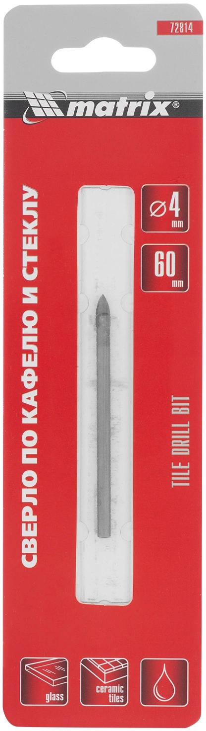 Сверло Matrix 72814 по каф/стекл Д=4мм (1пред.) для дрелей (72814)