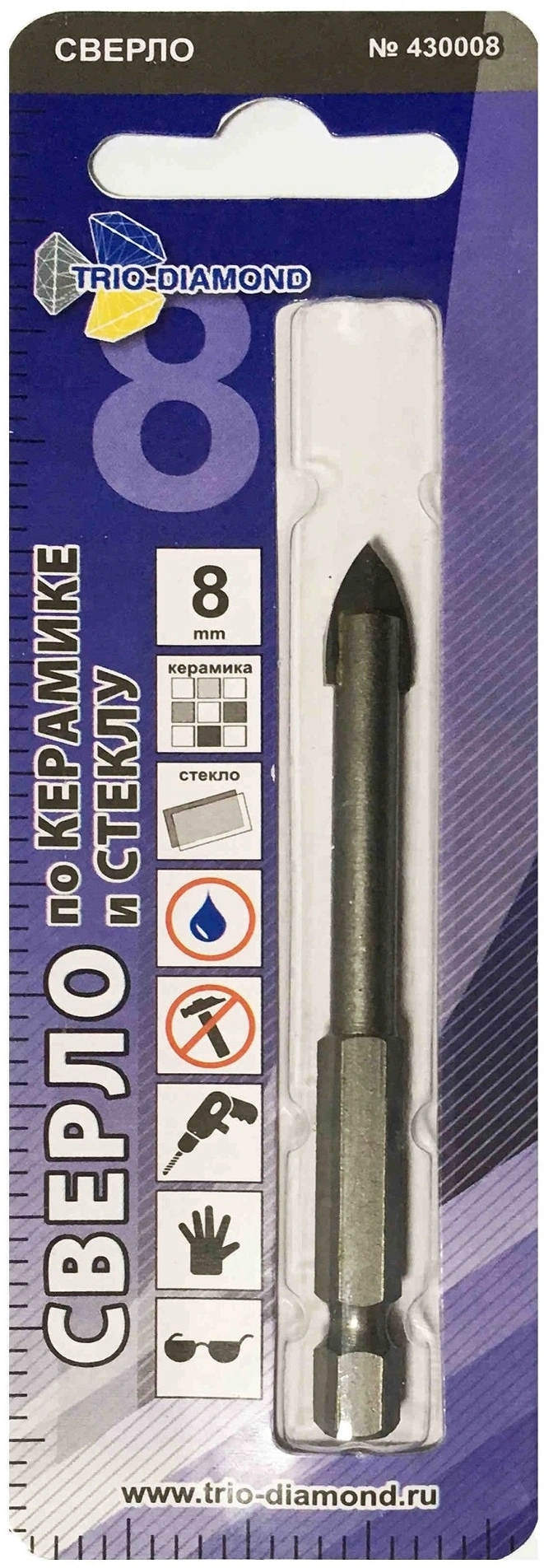 Сверло Trio-Diamond 430008 по кер/плит/стекл Д=8мм для дрелей/перфораторов (430008)