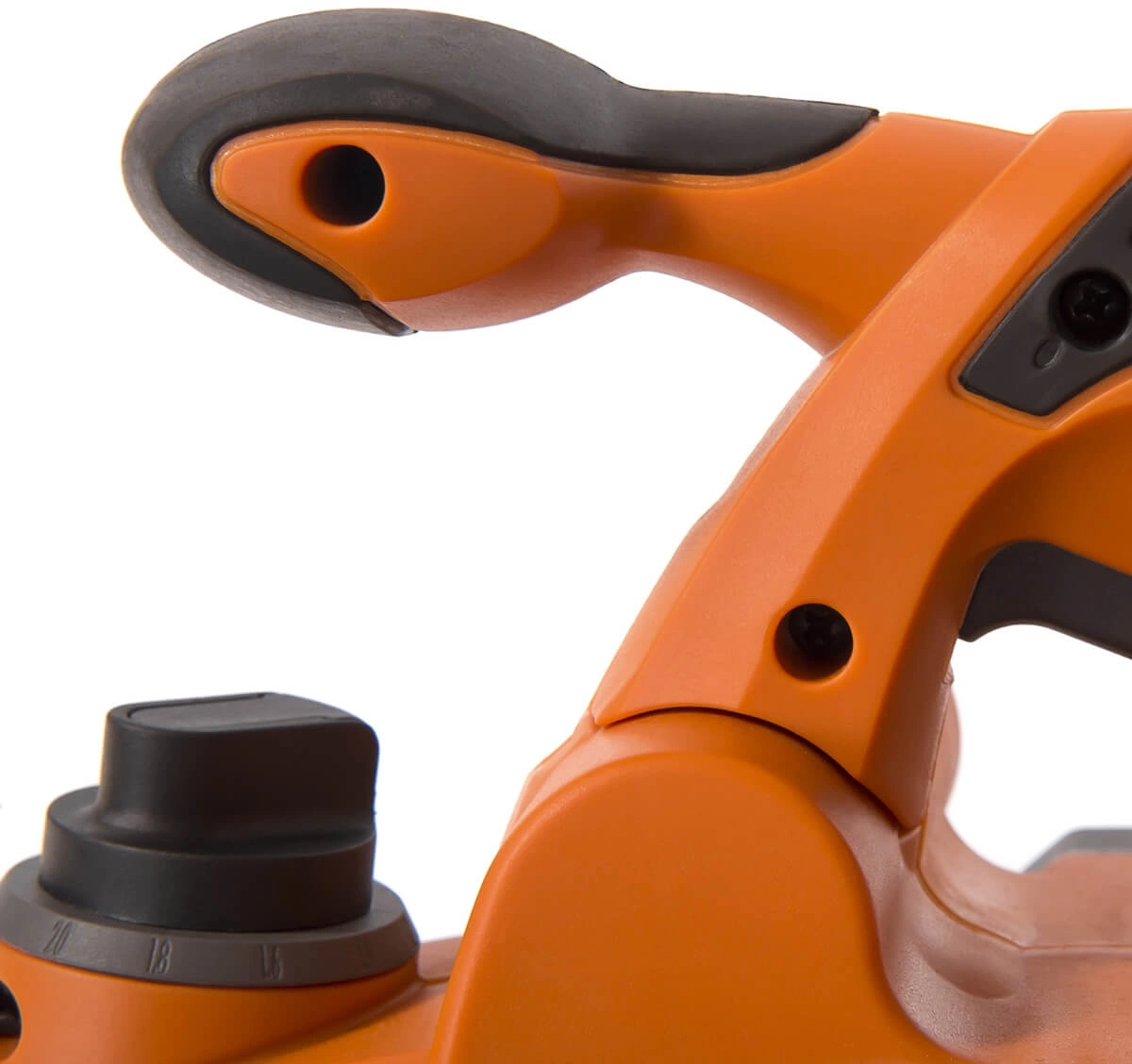 Удобная рукоятка с двумя точками хвата. Алюминиевая подошва. Возможность установки параллельного упора. Фиксатор кнопки включения.