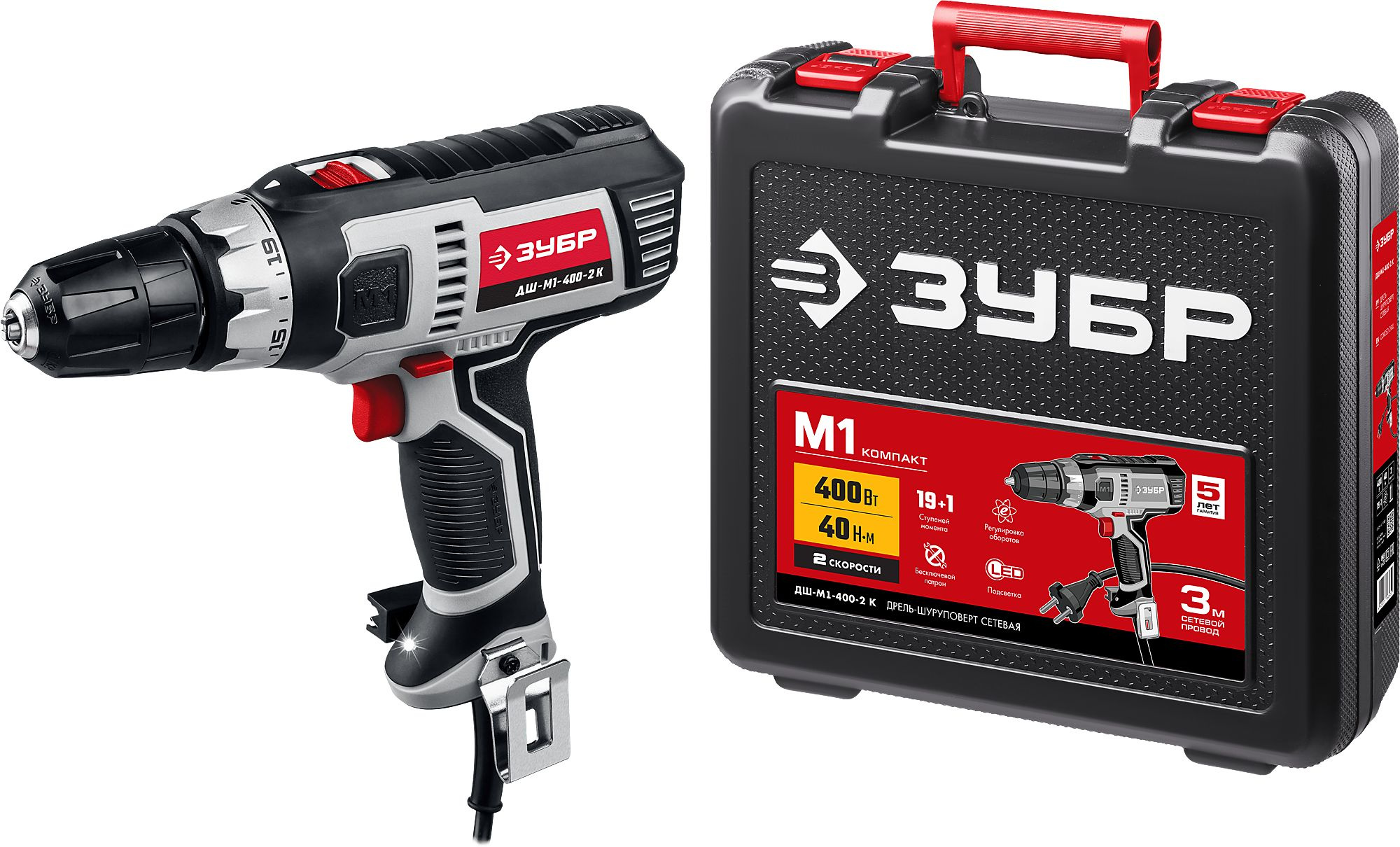 ЗУБР Дрель-шуруповерт Зубр ДШ-М1-400-2 К 400Вт патрон:быстрозажимной (кейс в комплекте) (ДШ-М1-400-2 К)