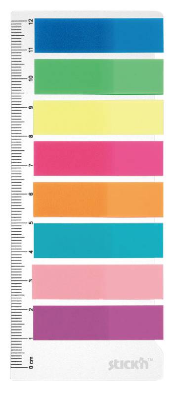 Закладки самокл. индексы пластиковые Stick`n 21345 12x45мм 8цв.в упак. 25лист на линейке европодвес (21345) (упаковка 24 шт.)