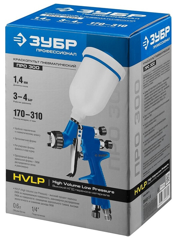ЗУБР Краскораспылитель Зубр ПРО 600 310л/мин соп.:1.4мм бак:0.6л (06453-1.4)