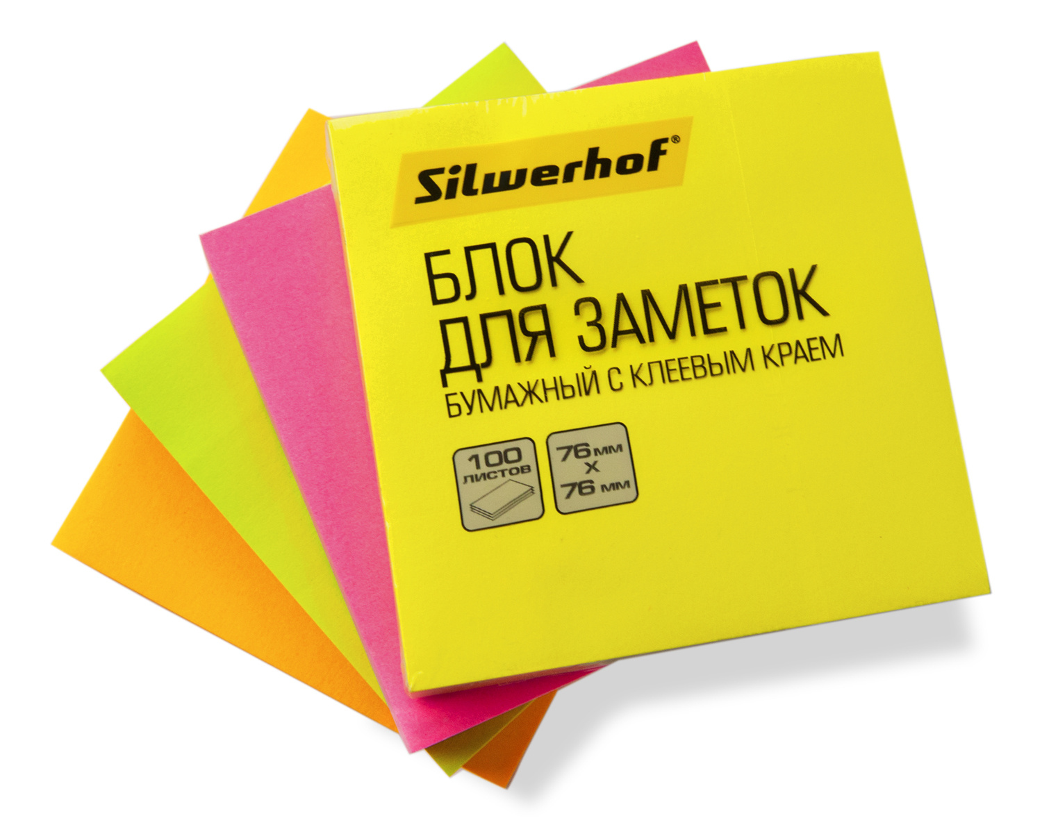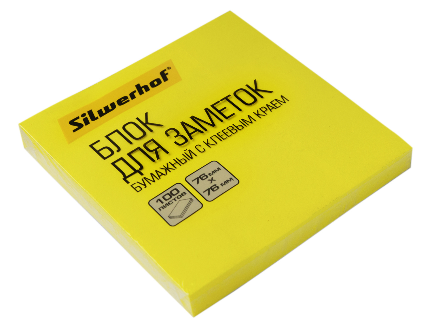 Блок самоклеящийся бумажный Silwerhof 682161-05 76x76мм 100лист. 75г/м2 неон желтый (682161-05) (упаковка 12 шт.)