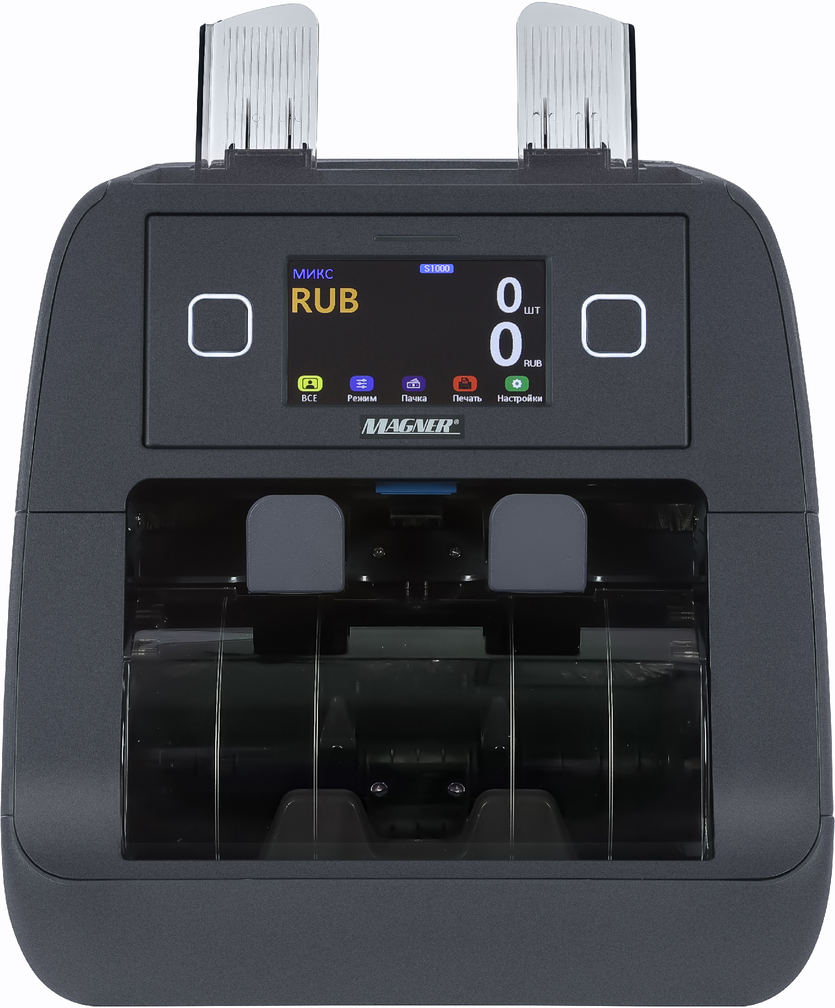 Современный дизайн, сенсорное управление, адаптивный дисплей, мультивалютный пересчет, определитель ветхости, установлено 7 валют, шторка, закрывающая карман выдачи, визуализация на дисплее причин отбраковки, экспорт данных на ПК и USB