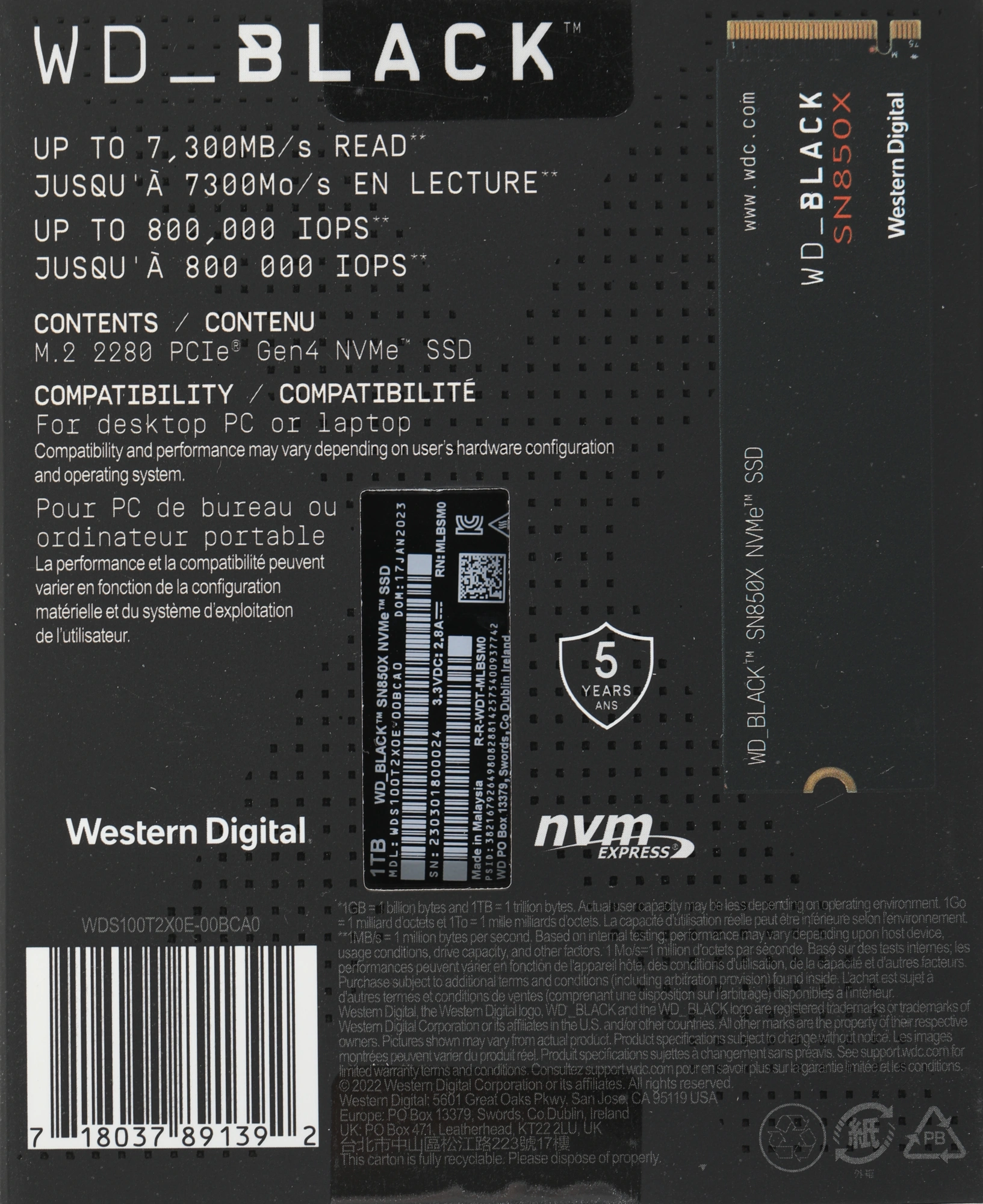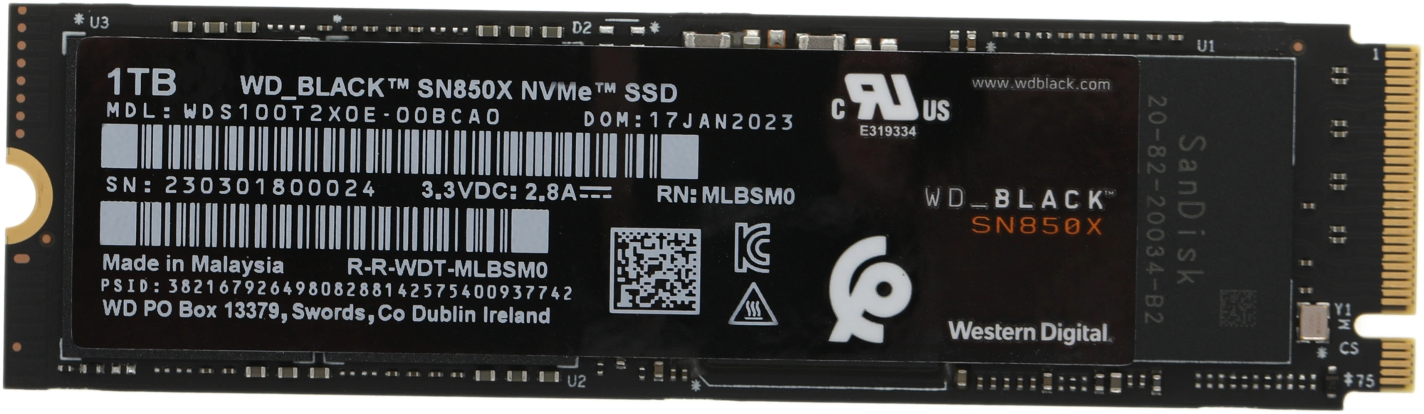 Накопитель SSD WD PCIe 4.0 x4 1TB WDS100T2X0E Black SN850X M.2 2280 (WDS100T2X0E)
