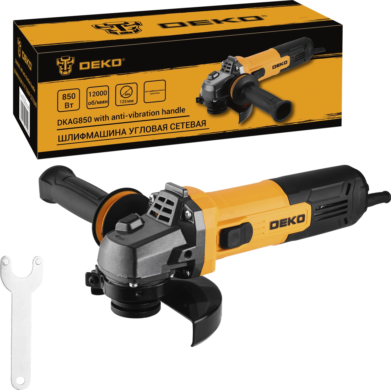 Углошлифовальная машина Deko DKAG850 850Вт 12000об/мин рез.шпин.:M14 d=125мм (085-1007) (085-1007)