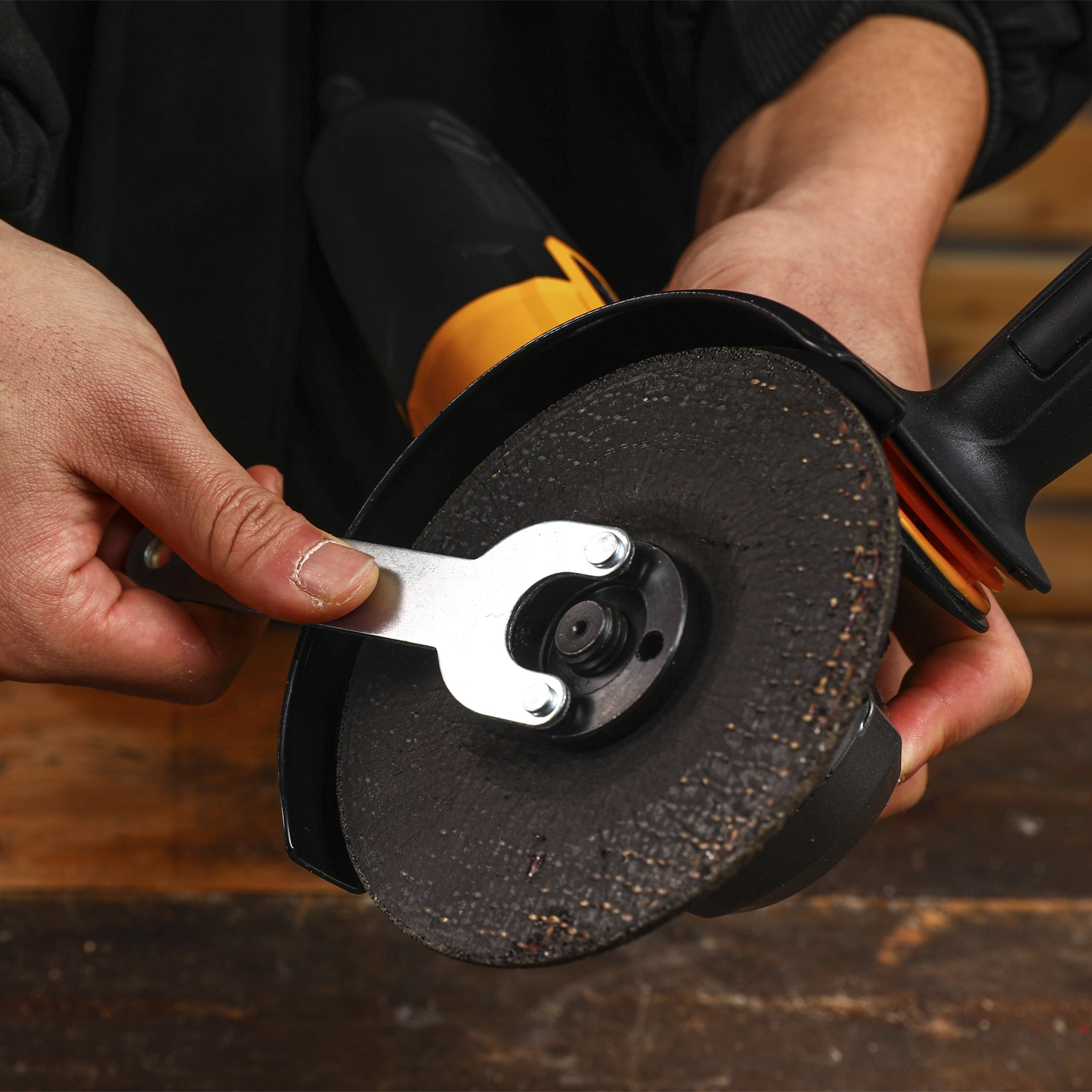 УШМ (поставляется в частично разобранном виде: основной корпус, защитный кожух), дополнительная рукоятка, фланцевый ключ, угольные щетки - 2 шт., руководство по эксплуатации.