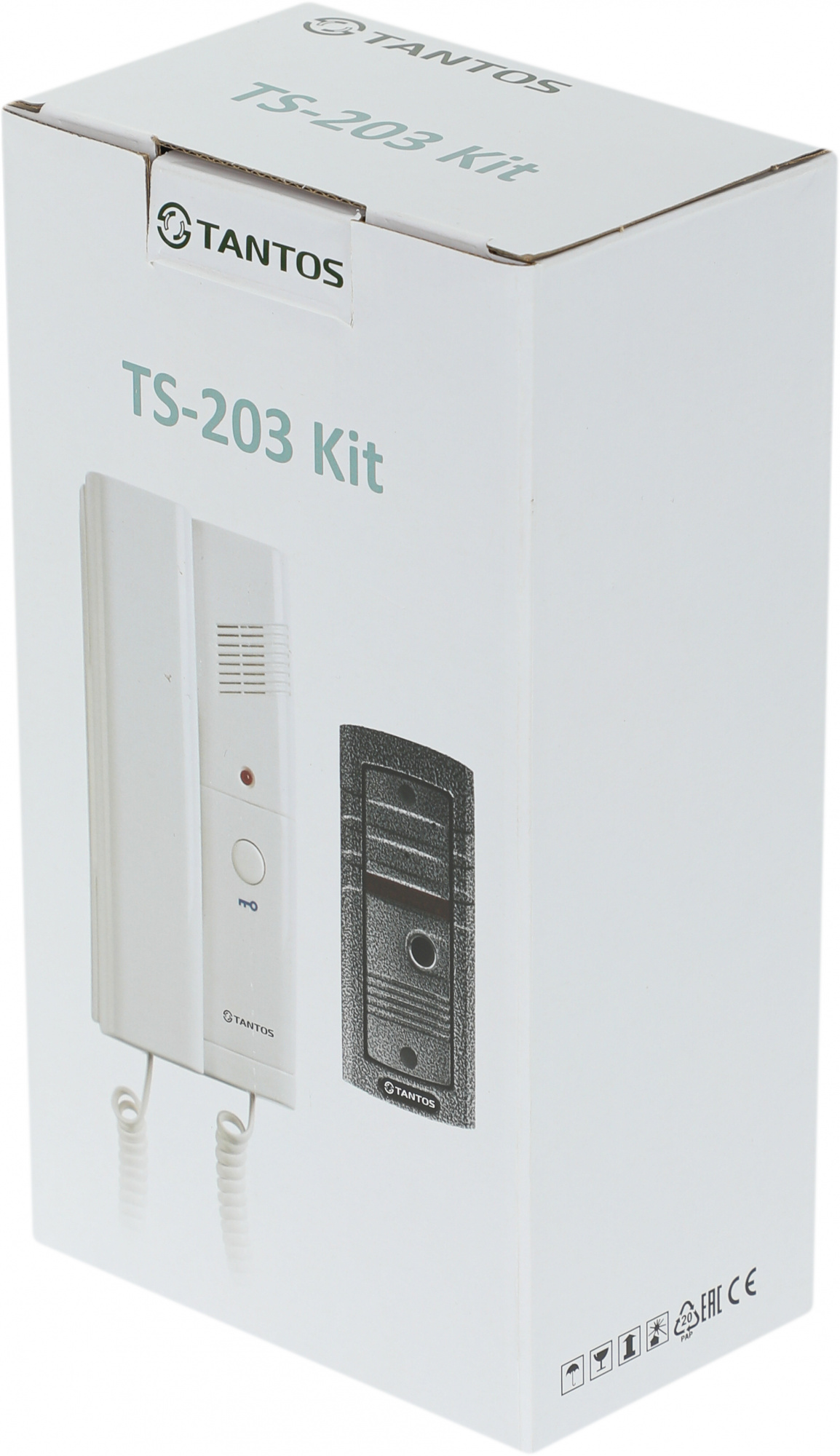 В комплект входят: вызывная панель с универсальным креплением (врезная обойма и козырек), трубка TS-203HA.