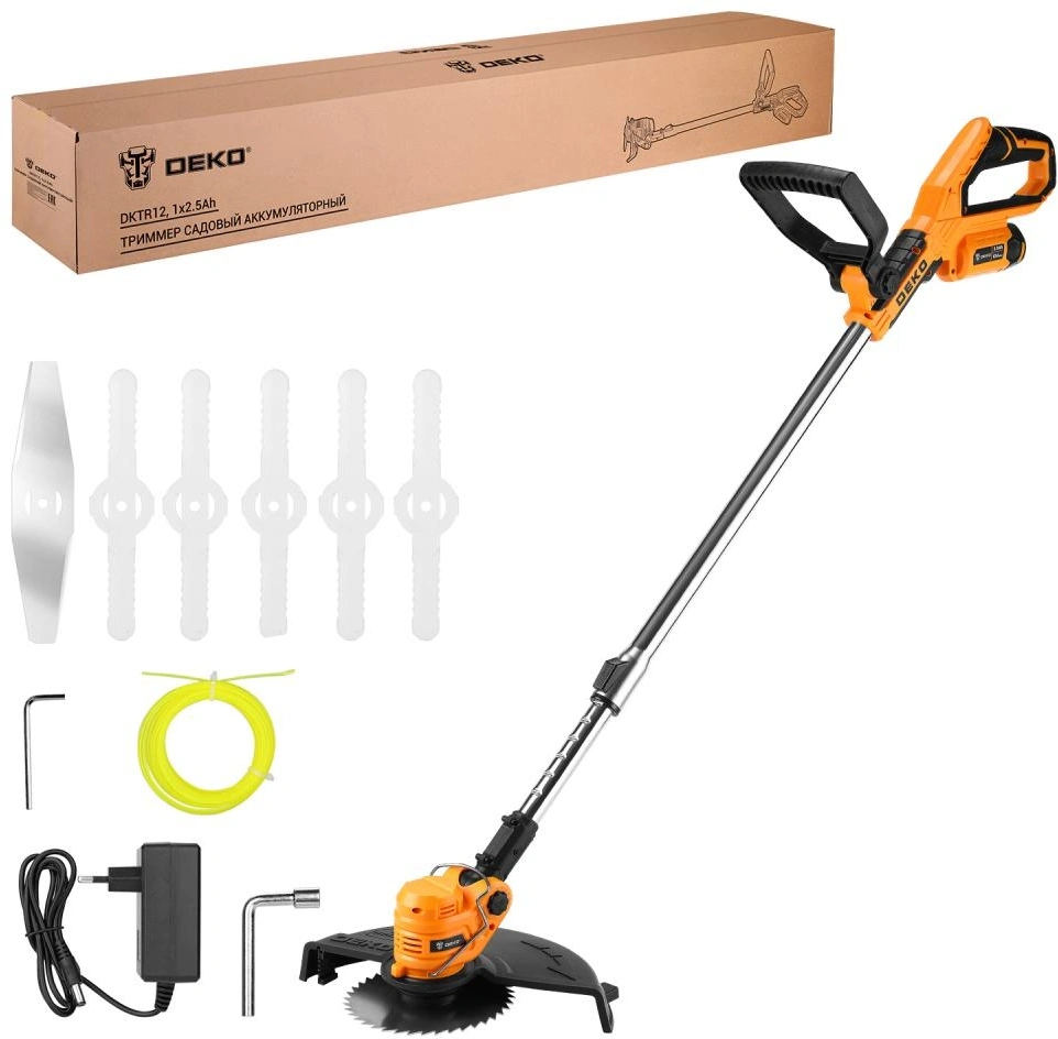 Триммер электрический Deko DKTR12 1х2.5Ач аккум. неразбор.штан. реж.эл.:леска/нож/диск (085-2005)