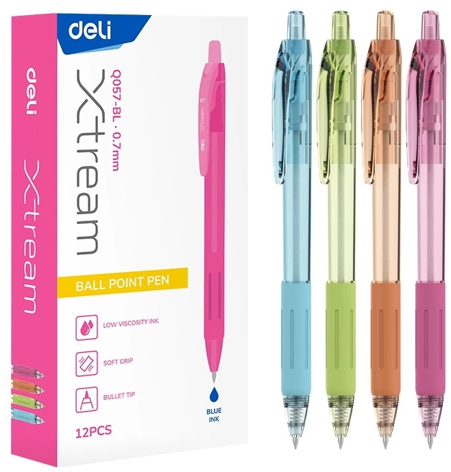Ручка шариков. автоматическая Deli EQ057-BL ассорти d=0.7мм син. черн. кор.карт. резин. манжета (EQ057-BL) (упаковка 12 шт.)