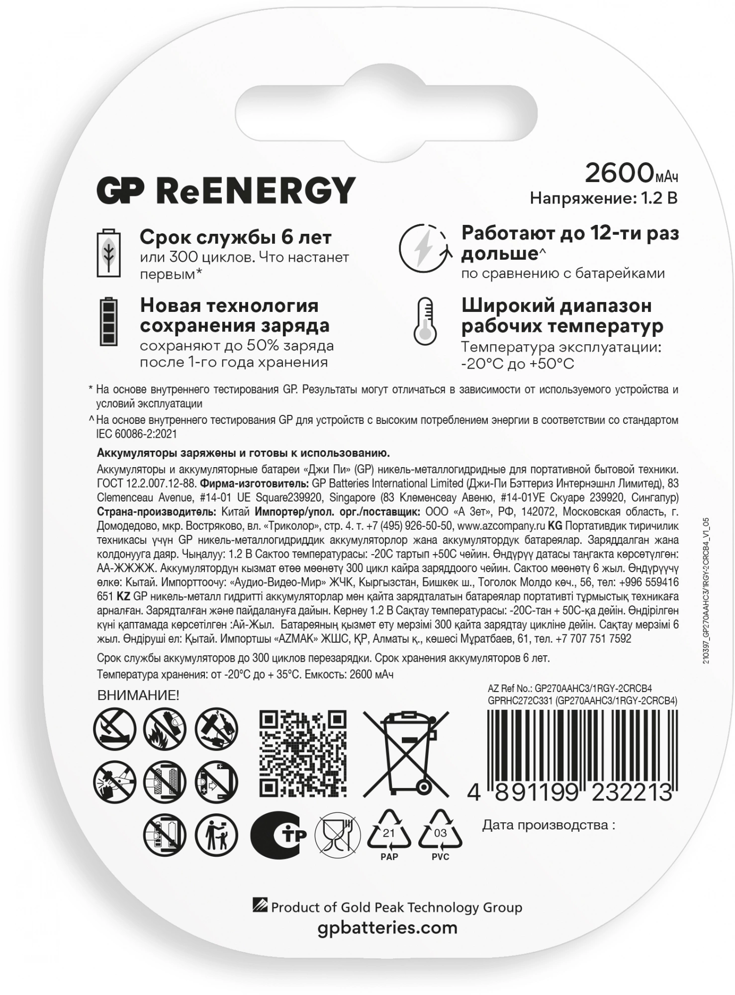 Аккумулятор GP 270AAHC3/1RGY-2CRCB4 32/320 AA NiMH 2700mAh (промо:3+1) (4шт) (270AAHC3/1RGY-2CRCB4 32/320)