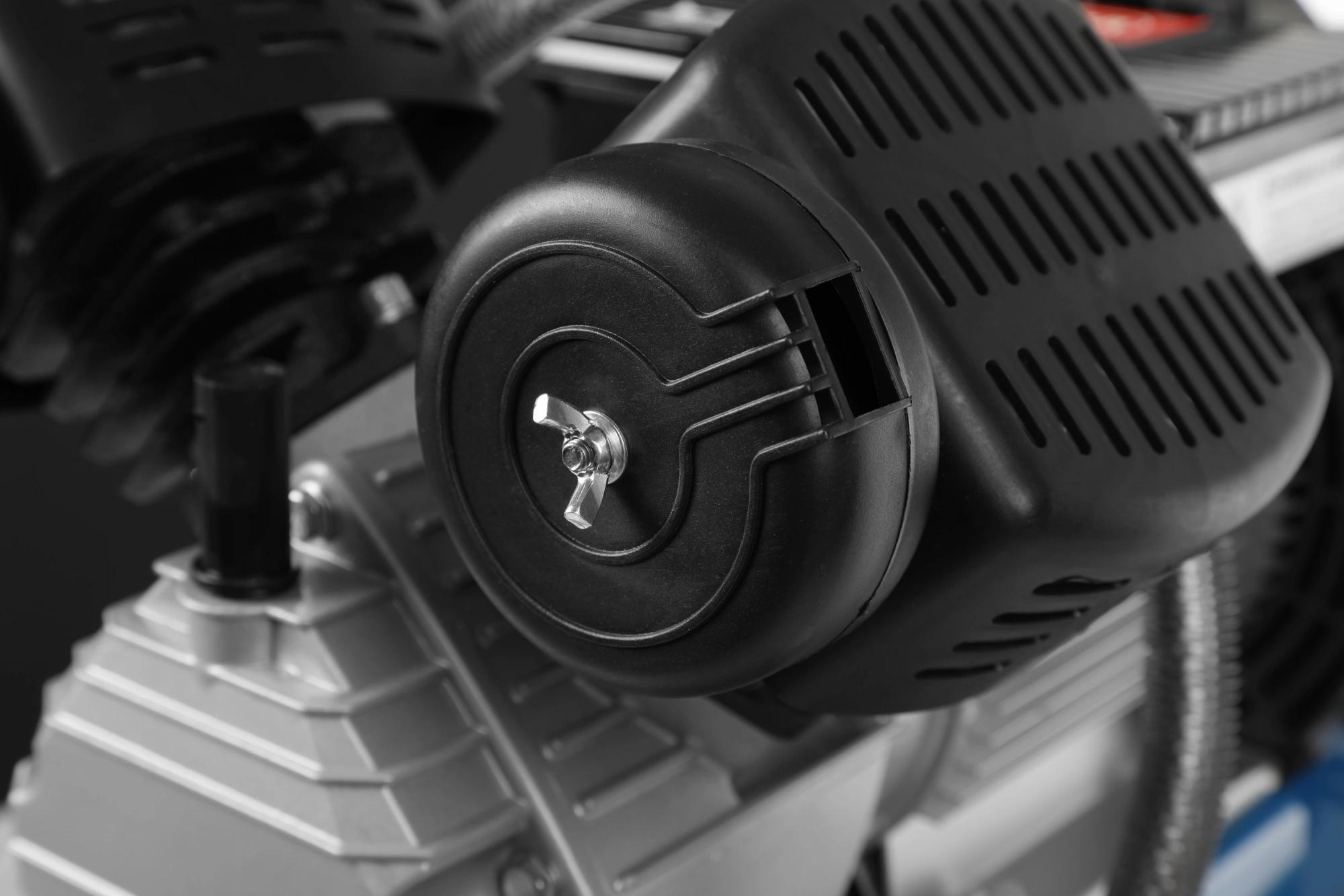 Чугунные цилиндры и алюминиевые головки обеспечивают хороший отвод тепла. Полиуретановые затворы обратных клапанов. Защита от перегрева. Удобство транспортировки. Высокая производительность за счет двух цилиндров, установленных по V-образной схеме.