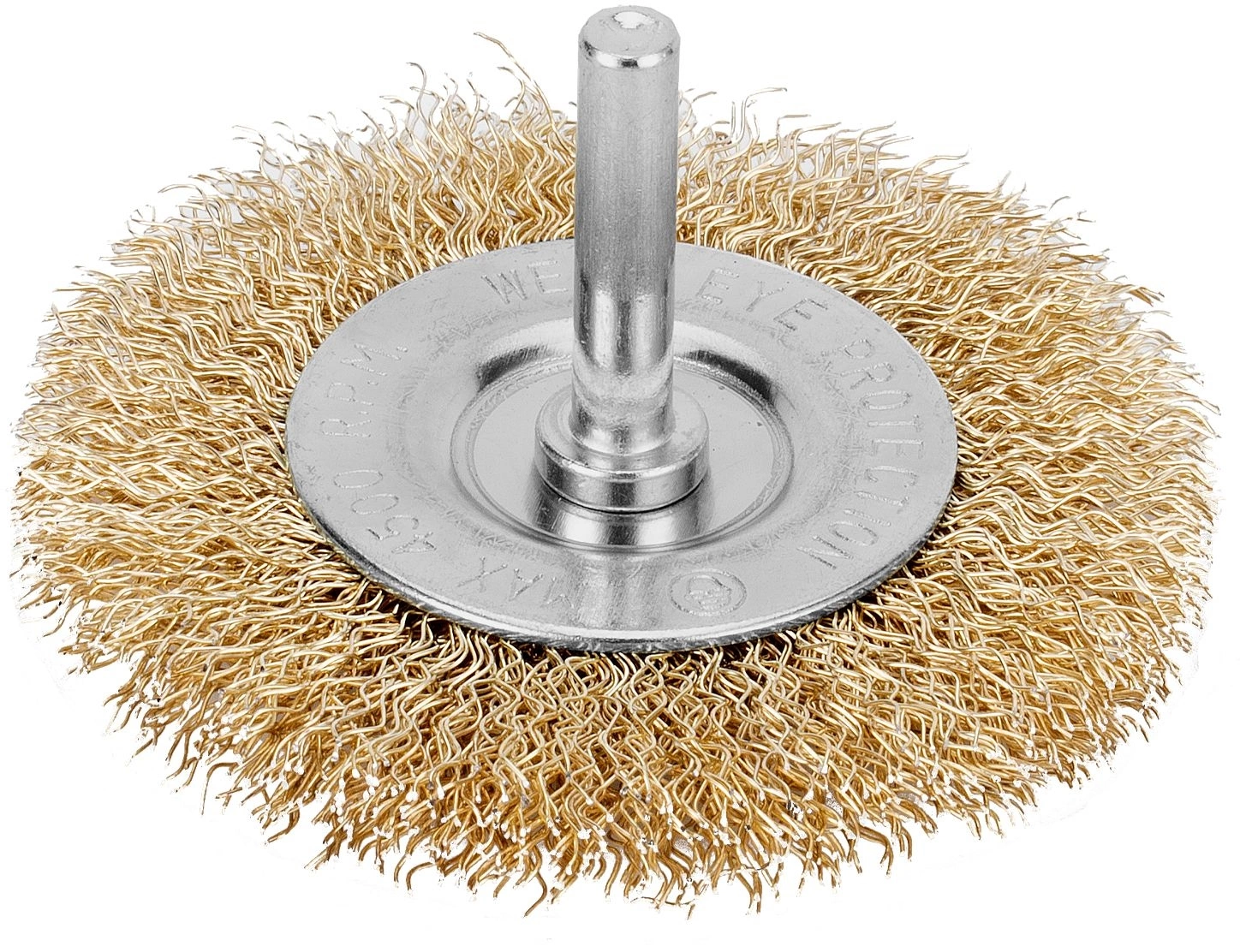 Плоская щетка для дрели Matrix 74446 диаметром 60 мм, со шпилькой, с щетиной из латунированной витой проволоки, предназначена для бережной очистки металлических, деревянных, пластиковых поверхностей от загрязнений, старых лакокрасочных материалов и ржавчины.
