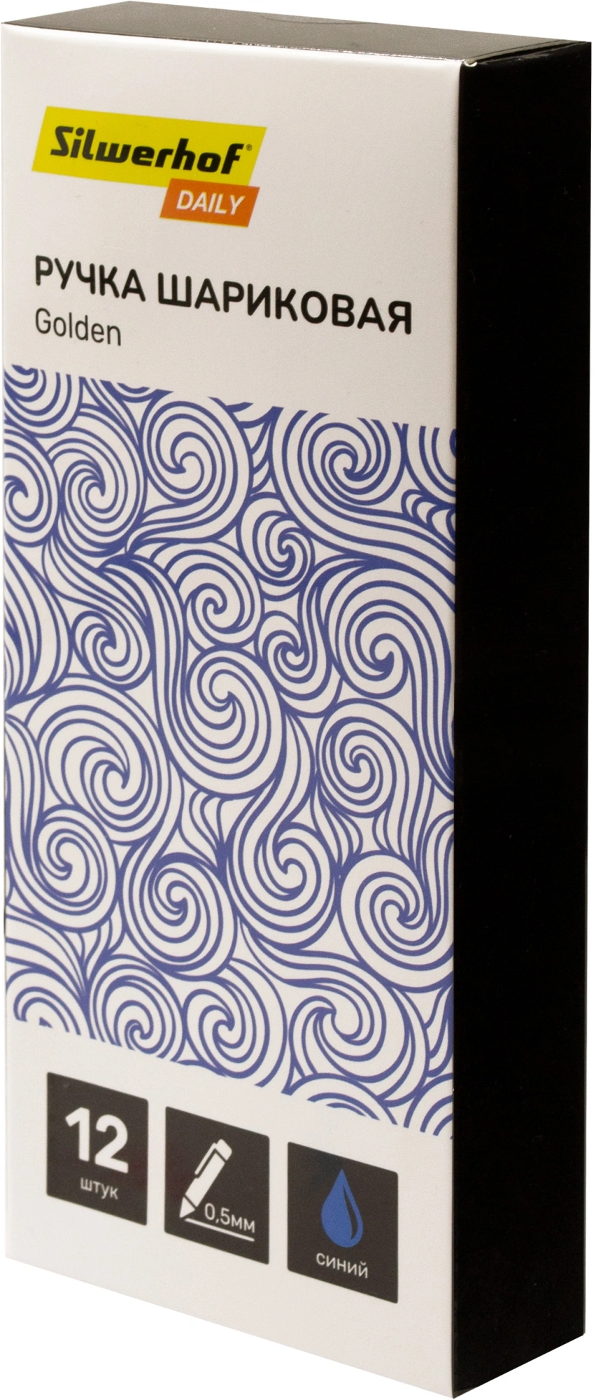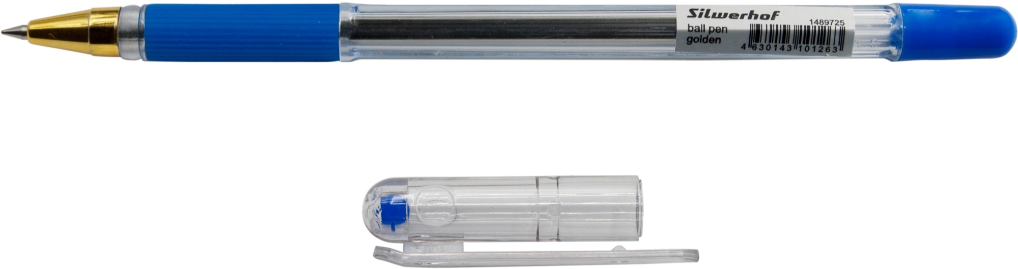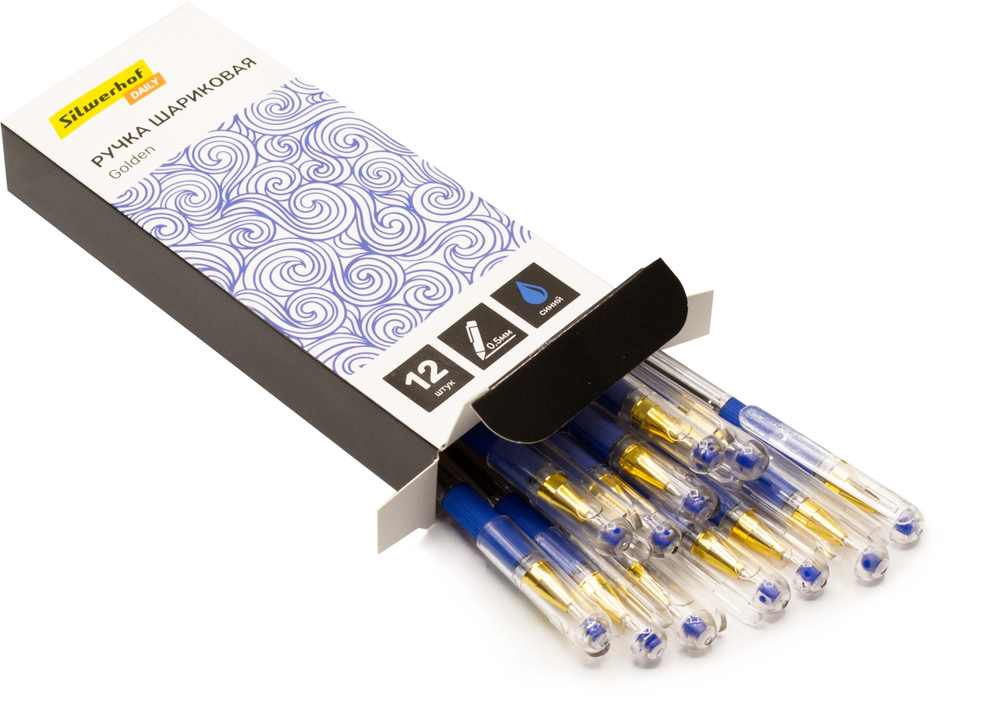 Ручка шариков. Silwerhof Daily Golden прозрачный d=0.5мм син. черн. сменный стержень линия 0.3мм резин. манжета (упаковка 12 шт.)