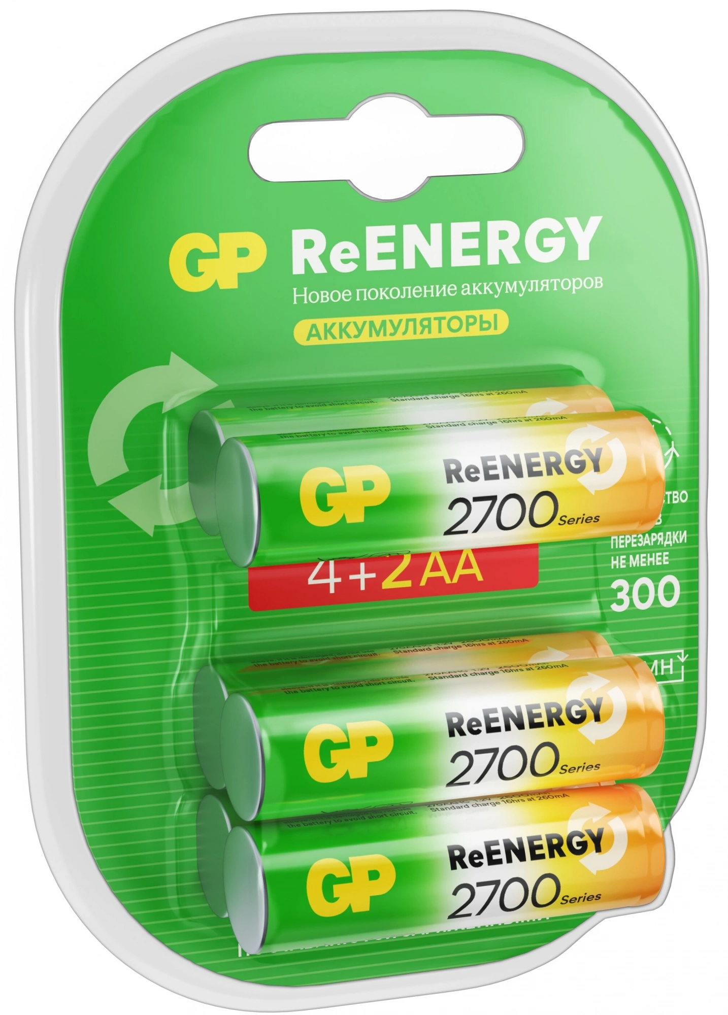 Аккумулятор GP 270AAHC4/2RGY-2CRCB6 AA NiMH 2700mAh (6шт) блистер (GP 270AAHC4/2RGY-2CRCB6 36/360)