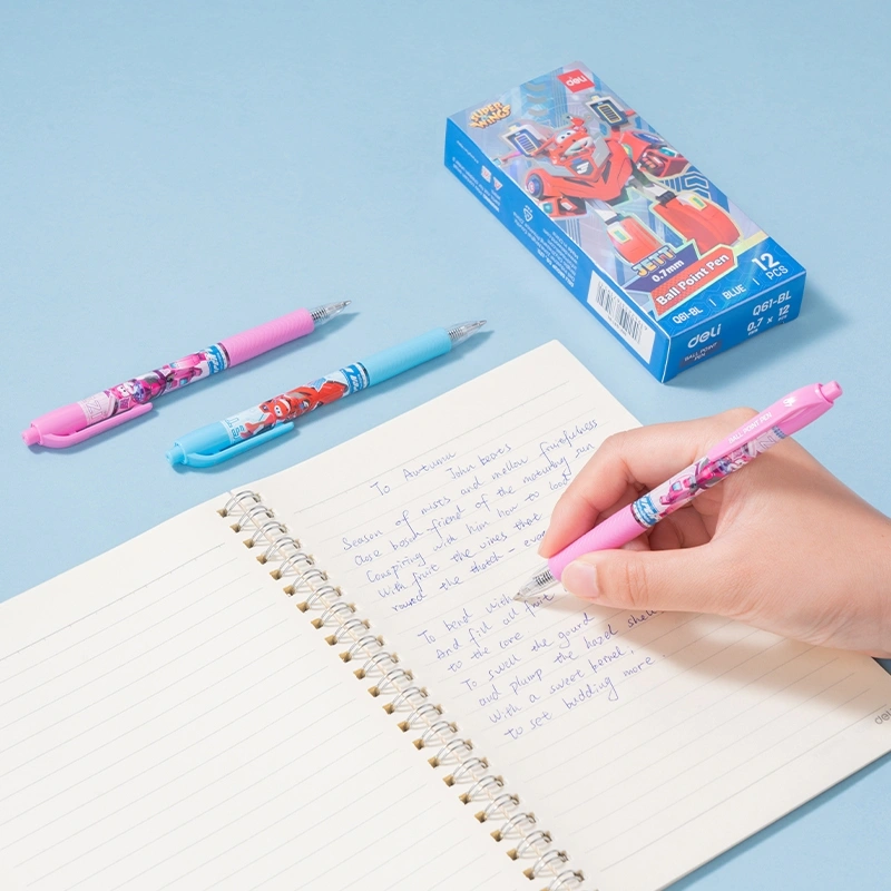 Ручка шариков. автоматическая Deli Super Wings (EQ61-BL) ассорти d=0.7мм син. черн. 1стерж. пулевидный пиш. наконечник кругл. резин. манжета чернила пониженной вязкости (EQ61-BL) (упаковка 12 шт.)