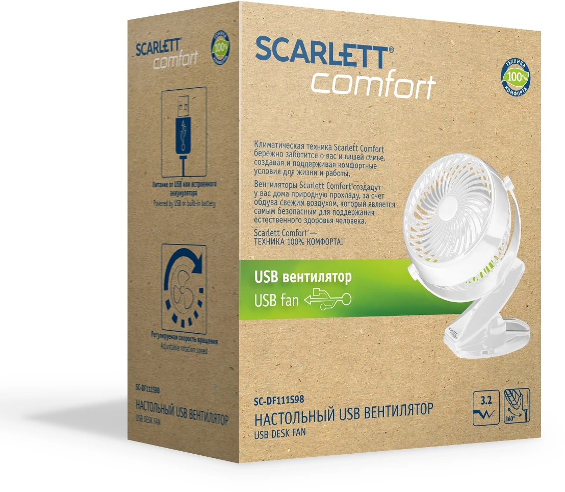 Вентилятор настольный Scarlett Comfort SC-DF111S98 3.2Вт скоростей:1 белый (SC-DF111S98)
