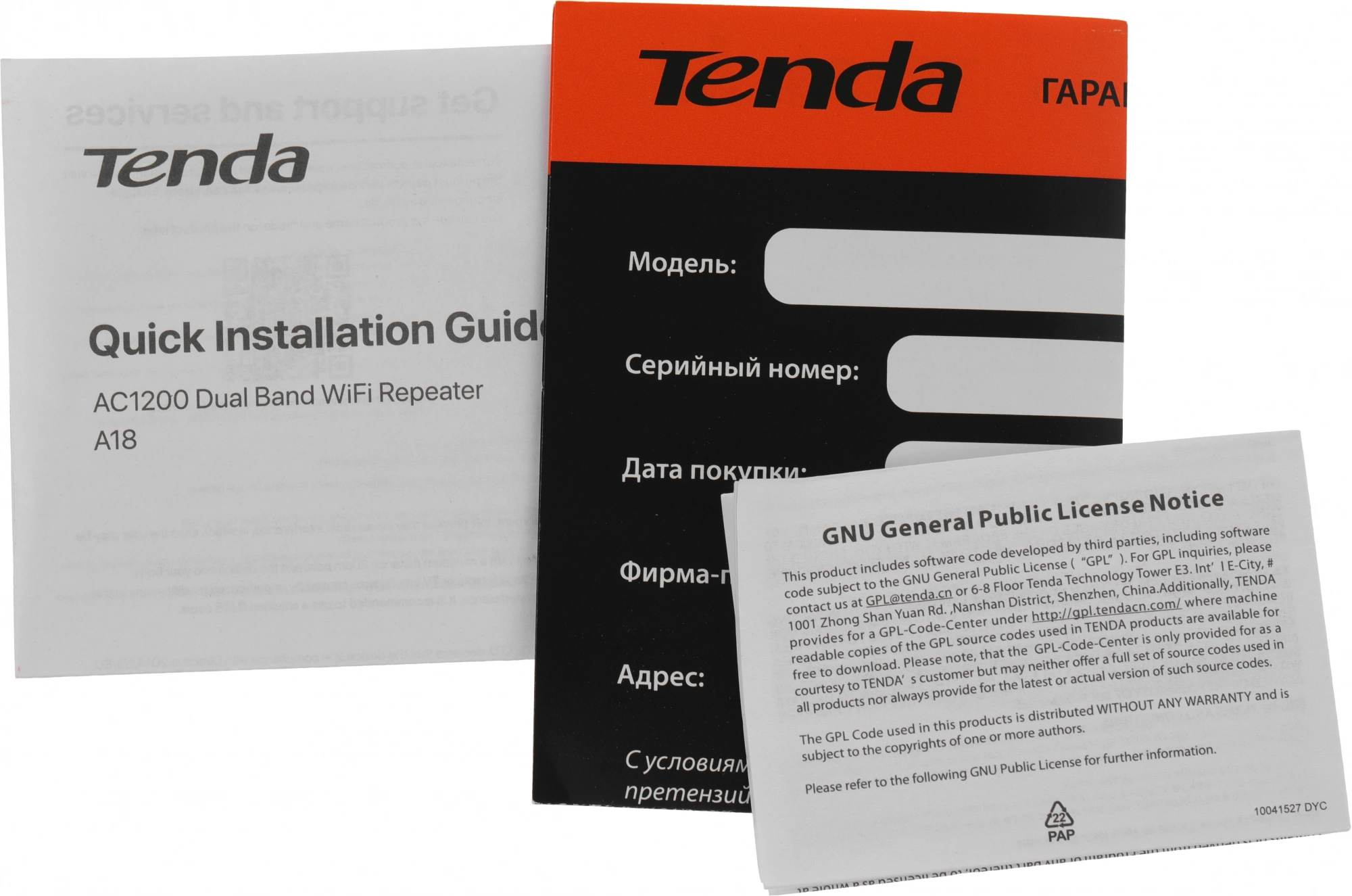 Отзывы на Повторитель беспроводного сигнала Tenda A18 AC1200 Wi-Fi белый (A18) отсутствуют