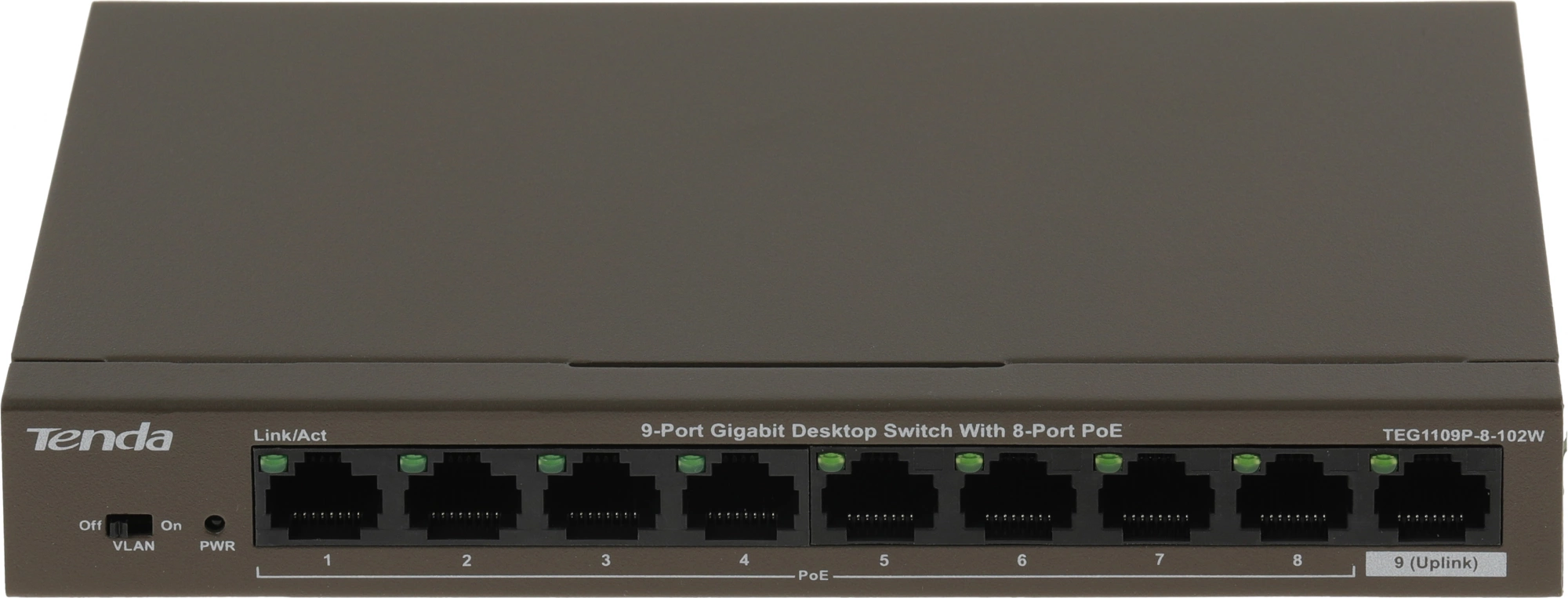 Коммутатор Tenda TEG1109P-8-102W (L2) 9x1Гбит/с 8PoE 92W неуправляемый (TEG1109P-8-102W)