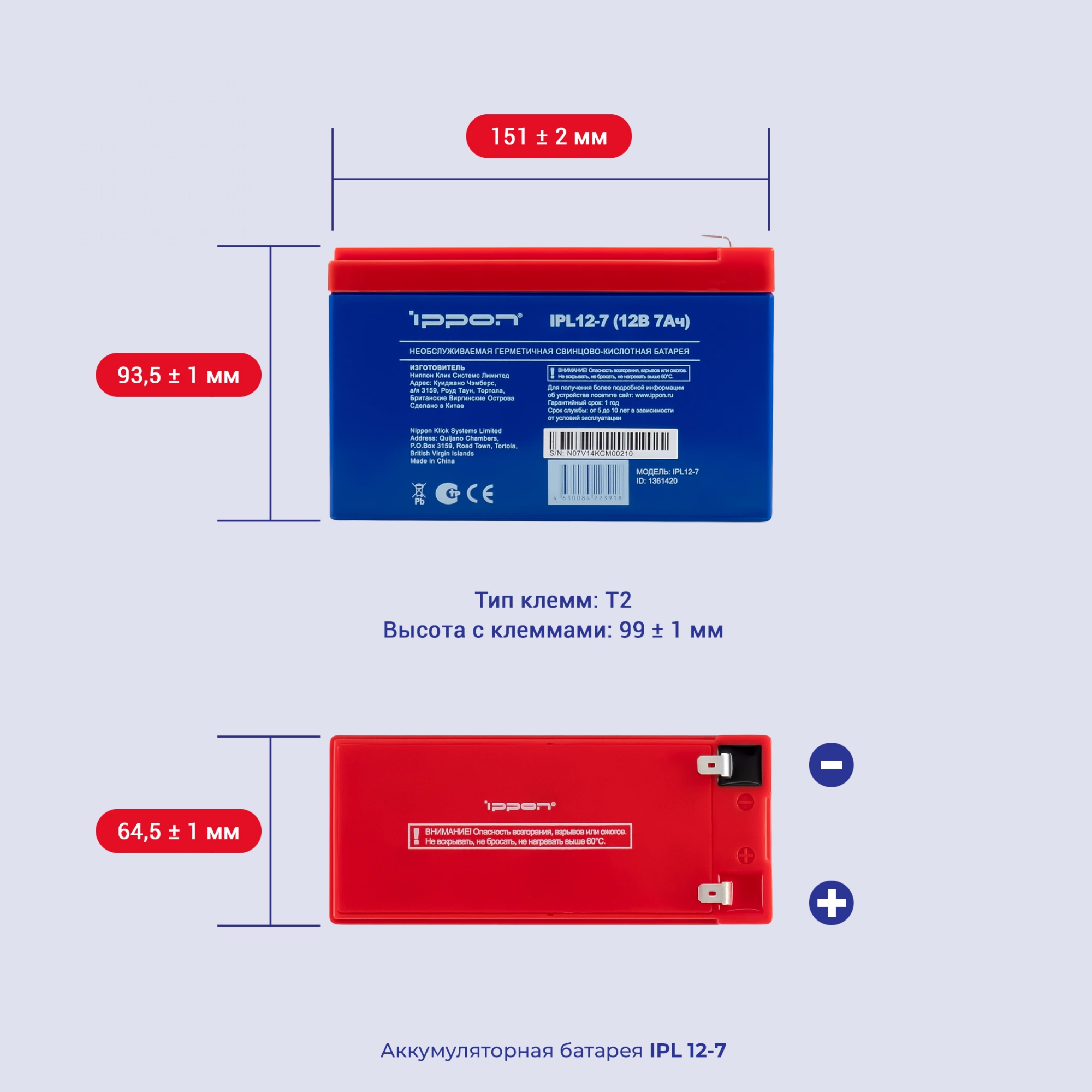 Батарея для ИБП Ippon IPL12-7 12В 7Ач (1361420)