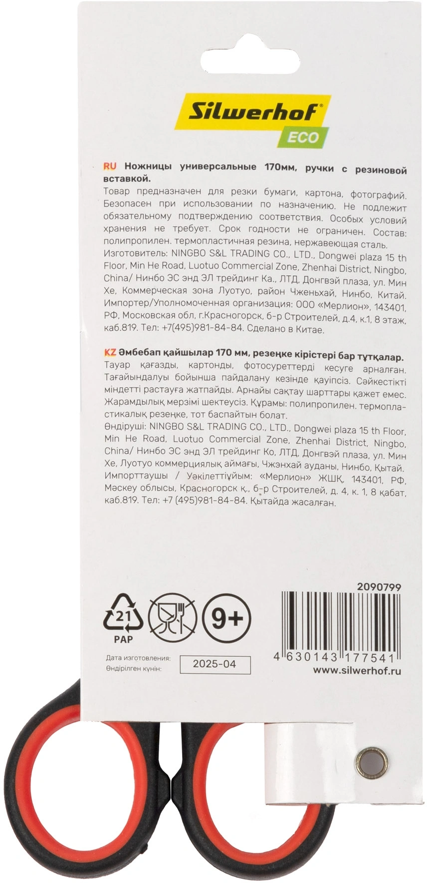 Ножницы Silwerhof Smart Eco универсальные 170мм ручки с резиновой вставкой черный/красный (упаковка 12 шт.)