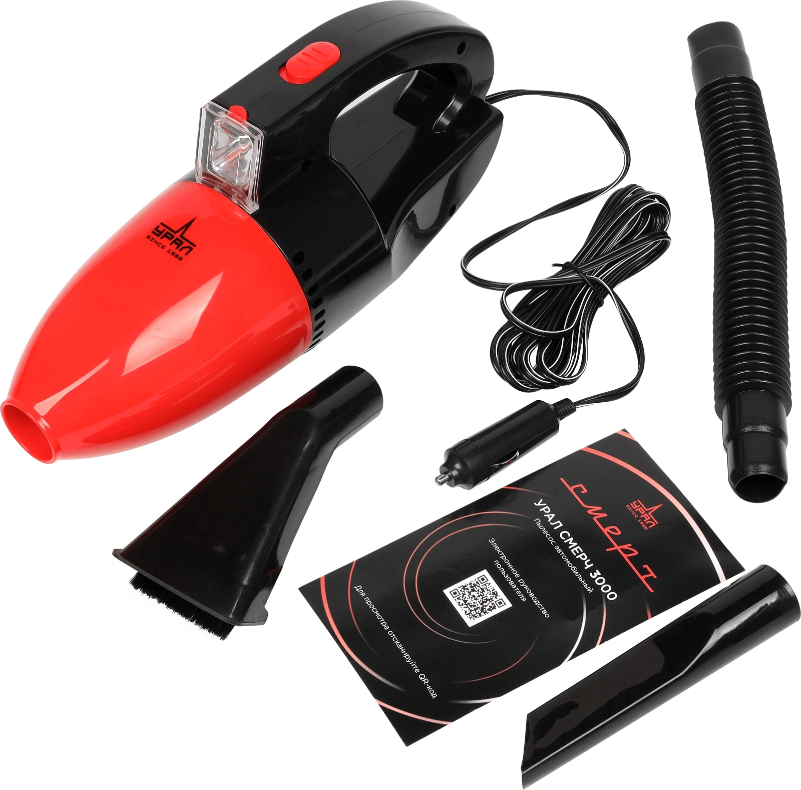 Пылесос Автомобильный Ural Смерч 3000 черный/красный 75Вт (УРАЛ СМЕРЧ 3000)