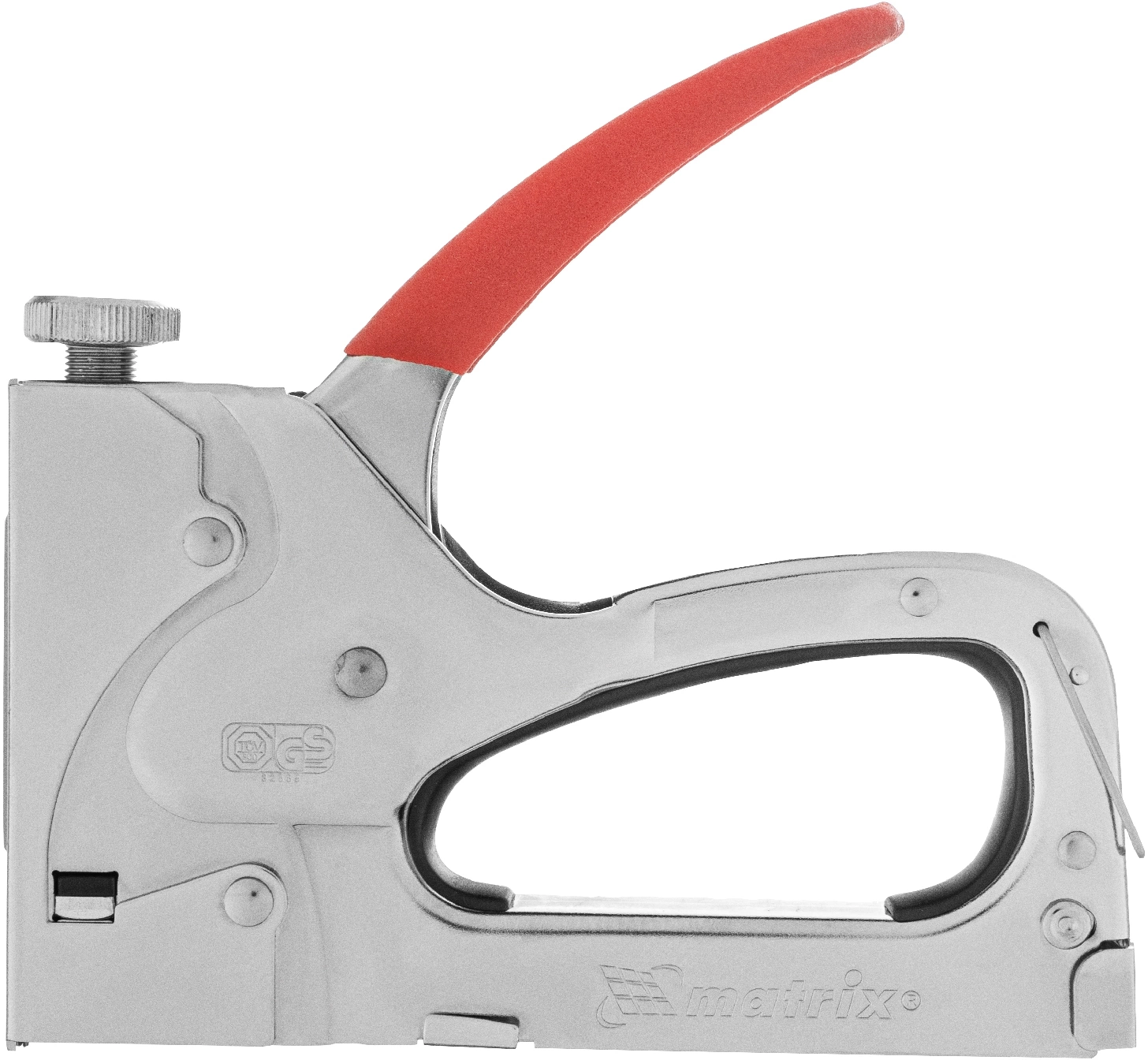 Ручки четырехфункционального мебельного степлера MATRIX MASTER 40901 очень удобны для надежного удержания инструмента в руках.Обладают надежной защитой от случайного выстрела скобой за счет металлической петли.