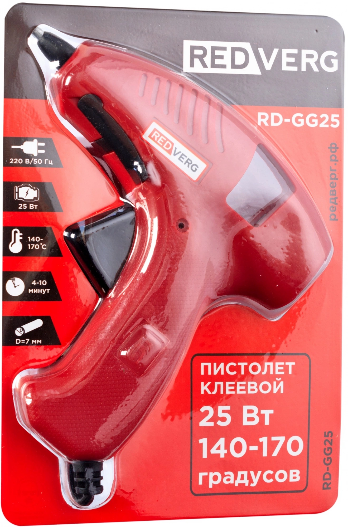 Клеевой пистолет RedVerg RD-GG25 25Вт 8гр/мин стерж.:7х100мм (RD-GG25)