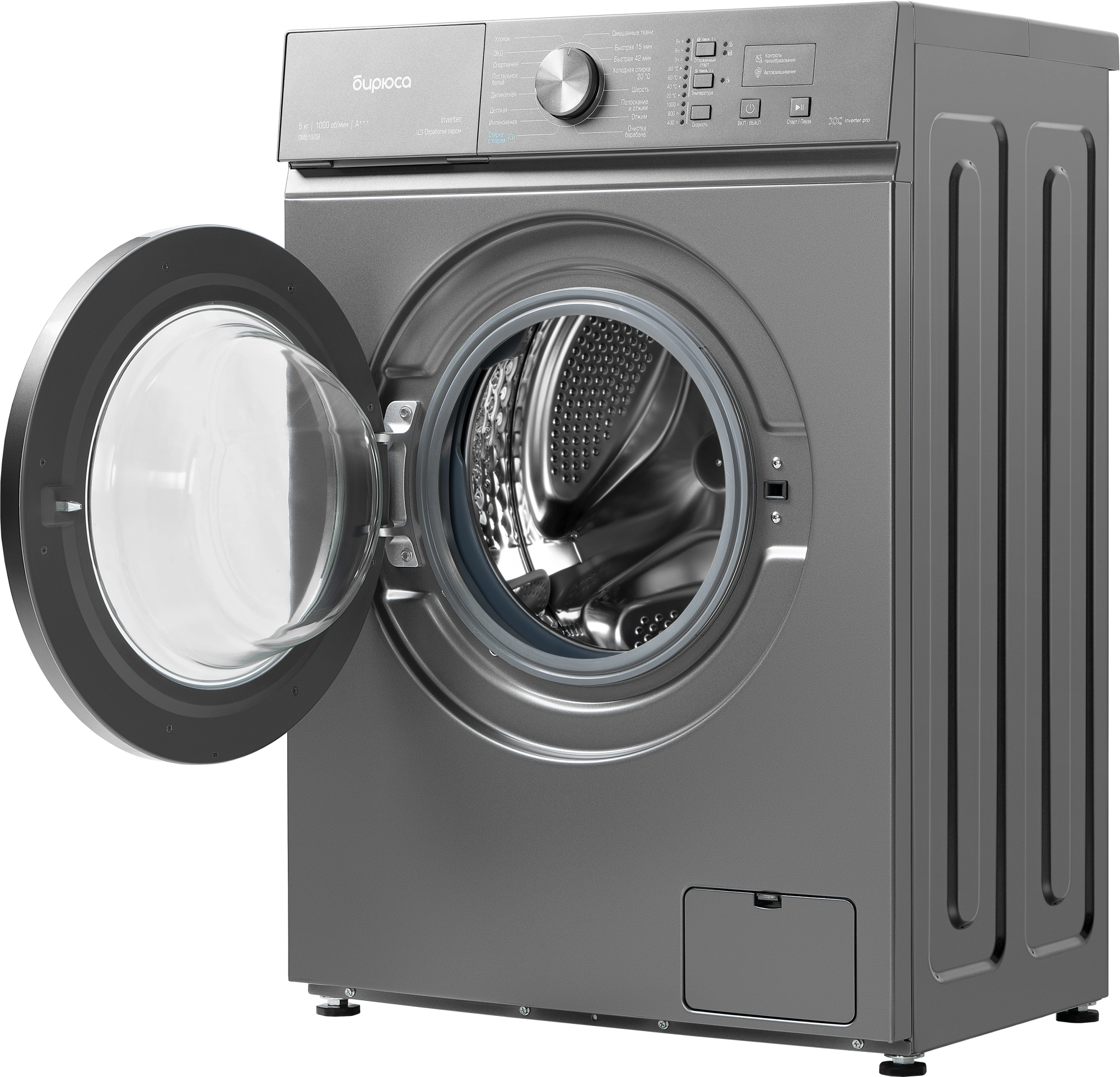 БИРЮСА Стиральная машина Бирюса WM-SM510/08 M класс: A+++ загр.фронтальная макс.:5кг темно-серый инвертор (WM-SM510/08 M)