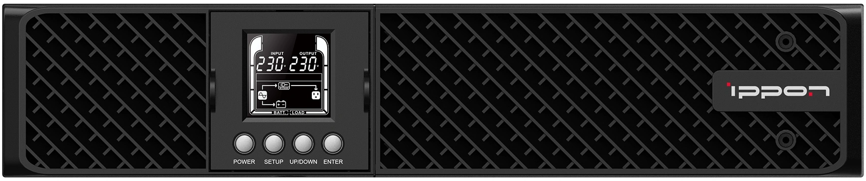 ЖКИ с подсветкой, отображающий цифровую величину входного и выходного напряжения, а также величину нагрузки и остаточной емкости батареи, пиктограммы индикации питания от сети, от батареи, режим регулятора