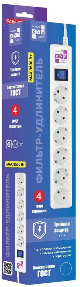 Сетевой фильтр Powercube SPG6-16-1,9M 1.9м (6 розеток) белый (коробка) (SPG6-16-1,9M)
