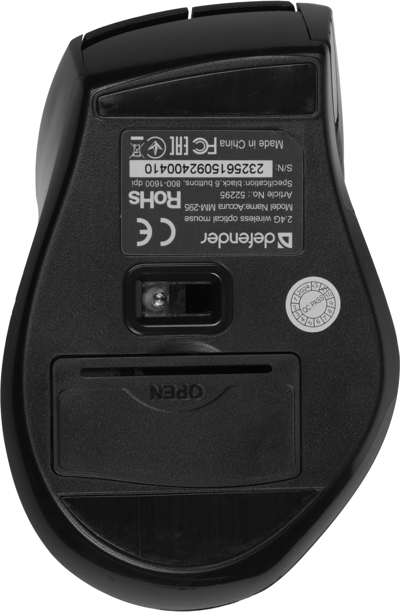 Мышь Defender Accura MM-295 черный оптическая 1600dpi беспров. USB 6but (52295) (52295)