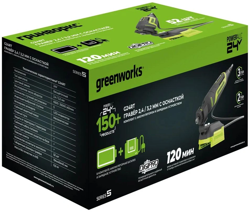 Гравер Greenworks G24RT 50Вт насадок:52 (3200807CUA)