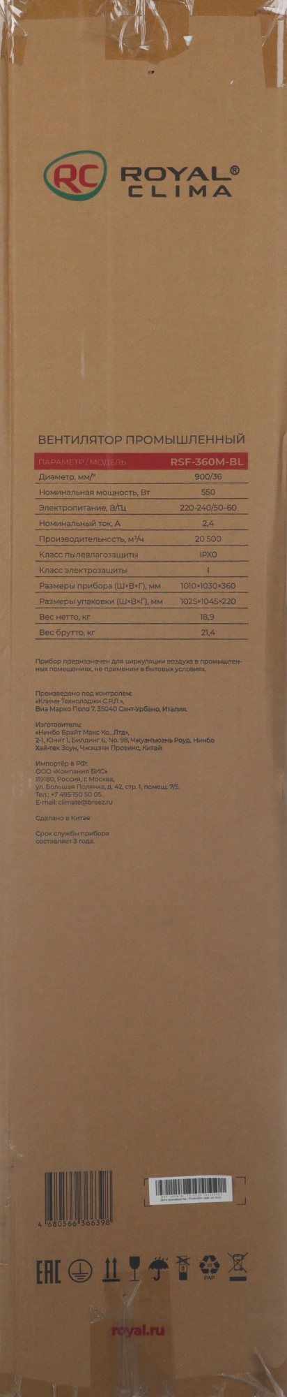 Вентилятор напольный Royal Clima RSF-360M-BL 550Вт скоростей:3 черный (RSF-360M-BL)