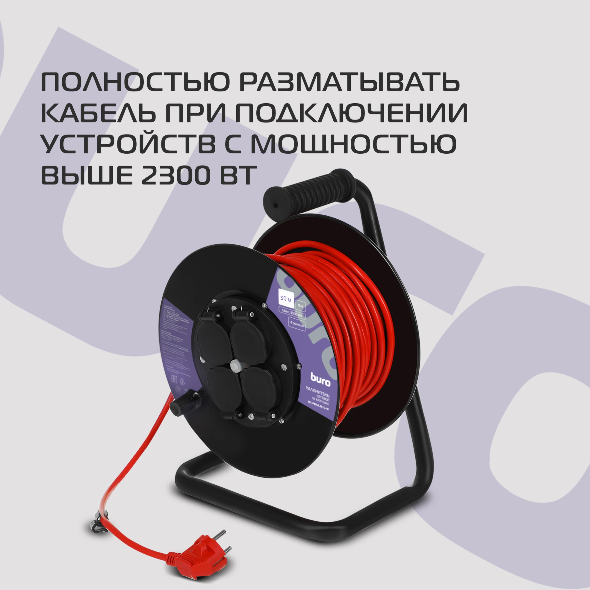 Сетевой удлинитель Buro BU-PSR4.50/G-16 50м (4 розетки) оранжевый (коробка) (BU-PSR4.50/G-16)